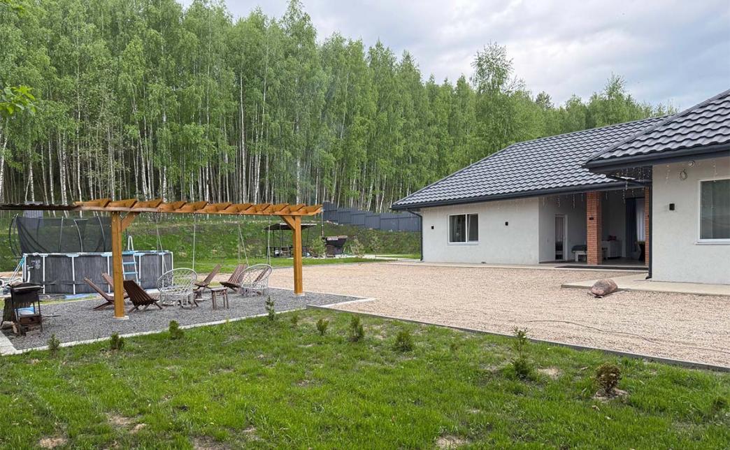 - Аренда бани включает мангальную зону, костровую зону, батут