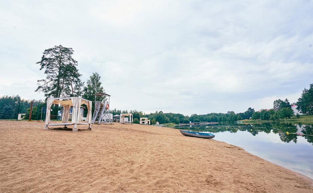 - собственный оборудованный пляж