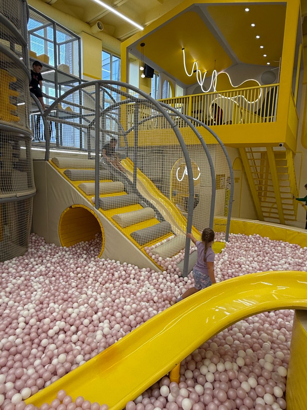 21 батут, баскетбольная зона, мягкая яма, стена для скалолазания, яма с шариками и большой детский лабиринт. Положительные эмоции гарантированы для всех!