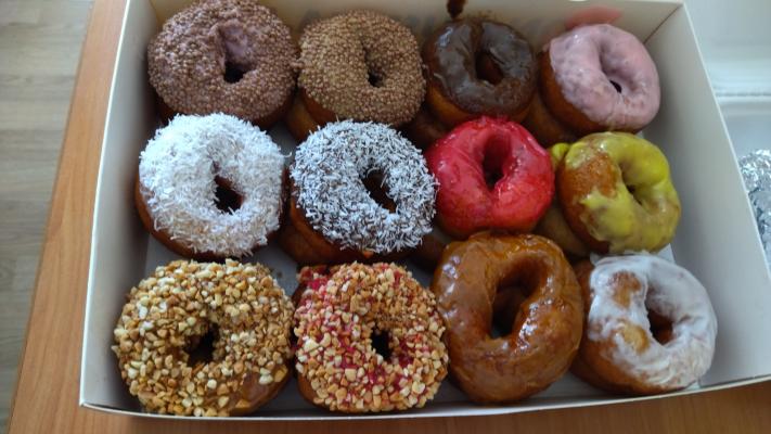 *Вкусы глазури и посыпки на пончиках в боксе выбираются случайным образом исходя из наличия в момент формирования заказа.