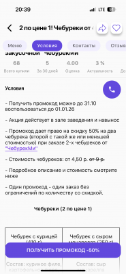 Почему в условиях акции указано то, что промокод действует в заведениях, а по факту говорят, что в каких-то определенных?