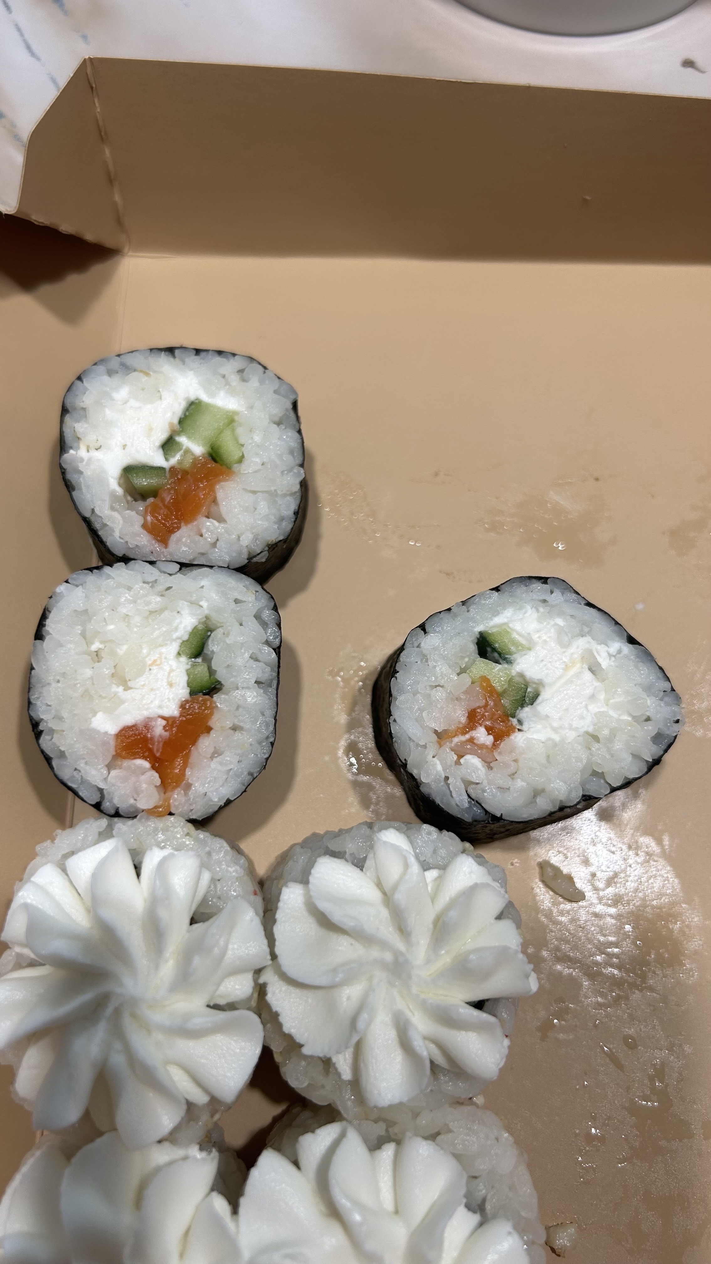 Заказывали второй раз! 4филы по фэст. Роллы не сухие, начинки достаточно. Будем заказывать еще!