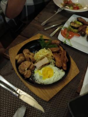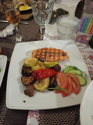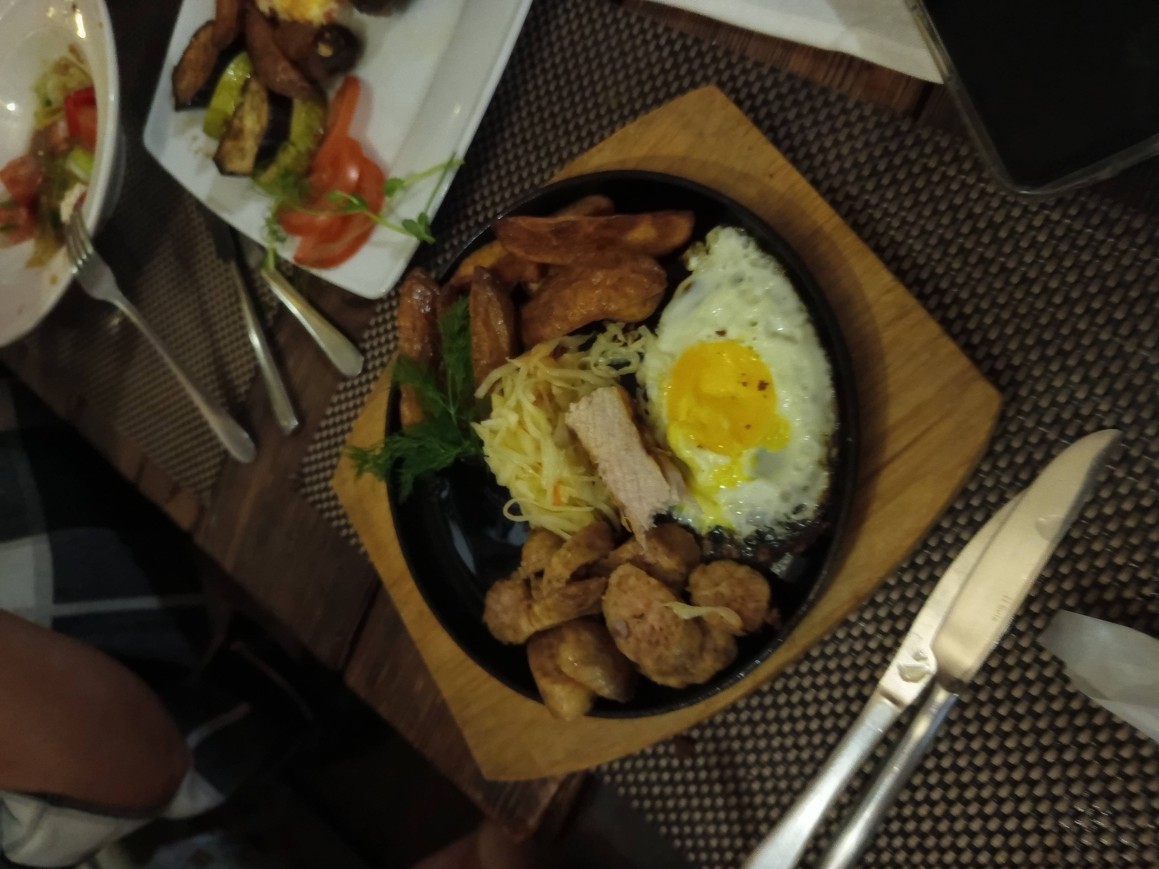 Уютное место, сидели на террасе, было красиво ,уютно и тепло. Были компанией, заказали все ужины попробовать. Блюда вкусные были все ,порции большие,подача красивая. Стейки,овощи,семга ,салаты всем было вкусно. Шипящая сковородка ,драники дети оценили.Мороженное с бисквитом и топпингом на десерт. Место не многолюдное совсем,никто не мешал отпраздновать своим узким кругом. Спасибо за акцию. Моя оценка 10. Официанты отзывчивые и любезные.