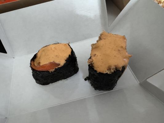 Ранее иногда заказывали здесь суши, потом, как правило, делали заказы в другой компании. Сегодня было не по пути и заказали снова здесь. Простите, но такого... я давно не ела. Суши в гипермаркетах и то вкуснее этого. Оцените только количество сыра в суши на фото и это не единичный экземпляр, это почти весь сет такой. Даже рис невкусный, просто настолько «дешевые», что даже неприлично.