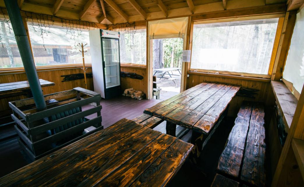 К беседке подведено электричество, есть холодильник. Бесплатно предоставляются дрова и принадлежности для барбекю (комплект шампуров и решетка). Уголь и розжиг можно приобрести у администратора.