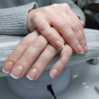 - наращивание ногтей + долговременное покрытие френч: