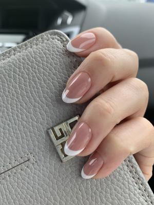 - наращивание ногтей + долговременное покрытие френч: