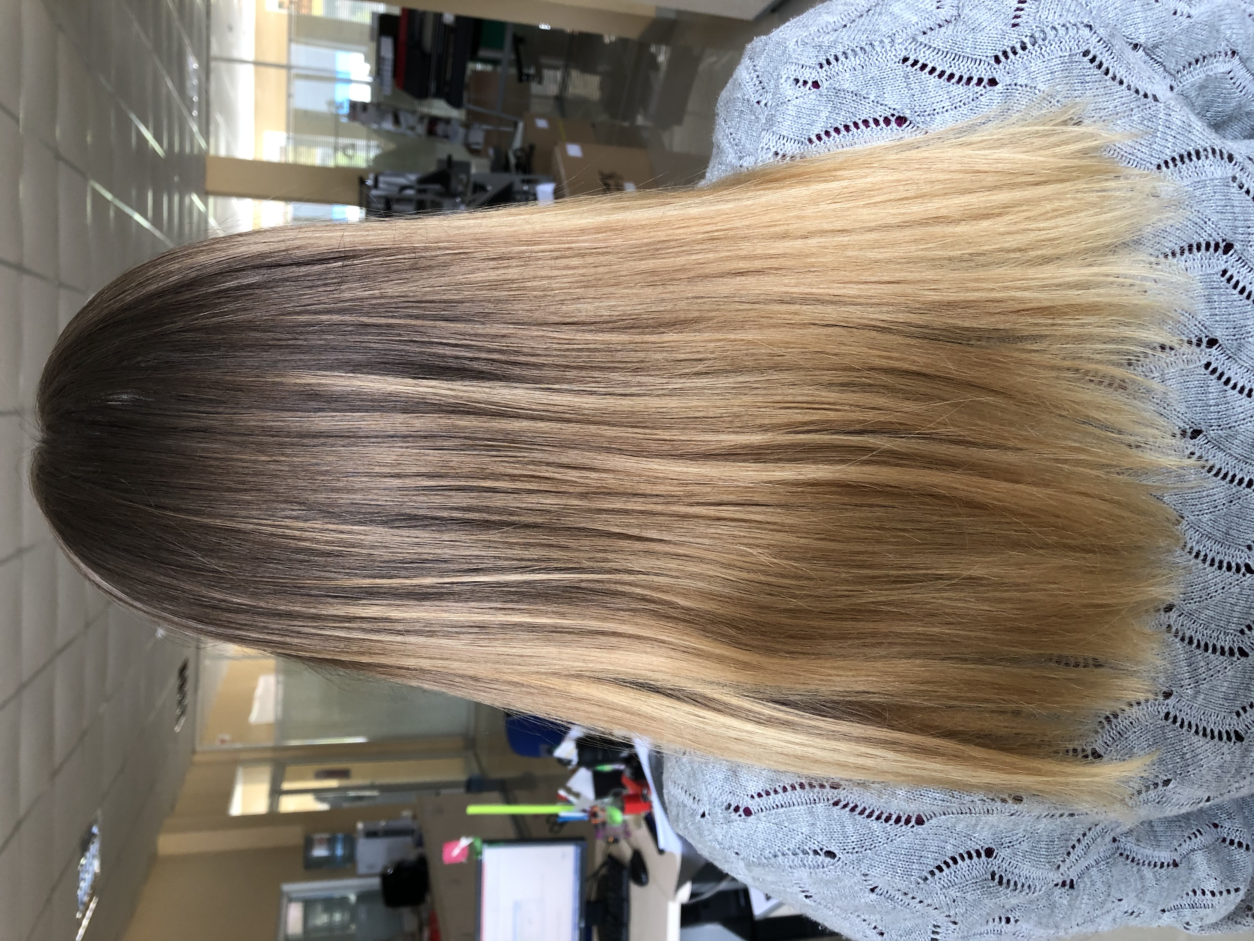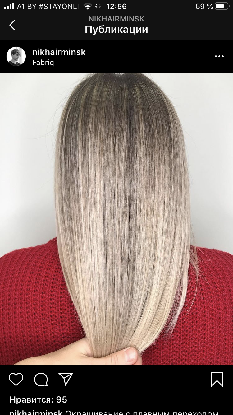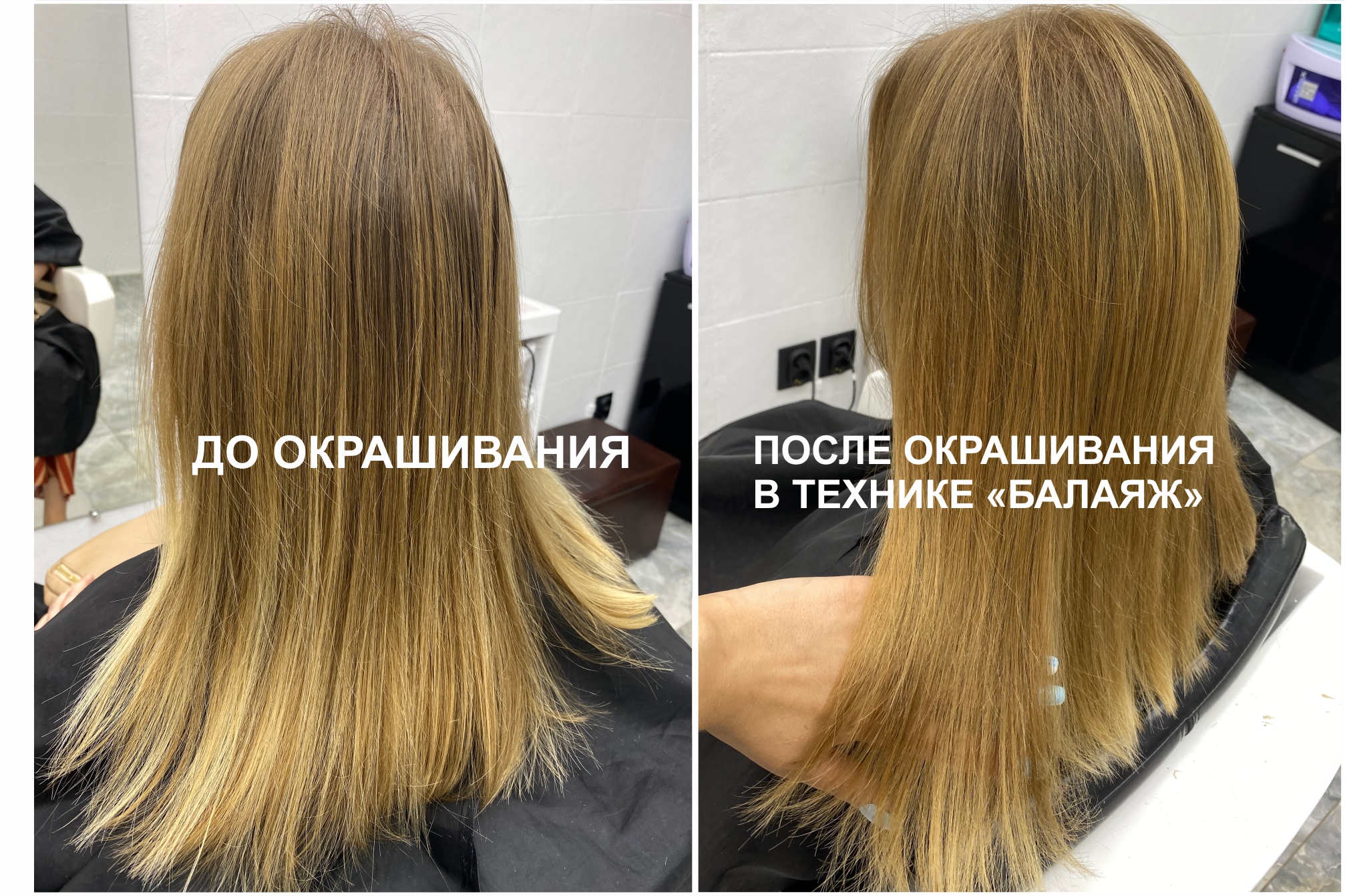 Здравствуйте !) подскажите пожалуйста стоимость такого окрашивания длина ниже лопаток , густые волосы , свой цвет как на фото «до»