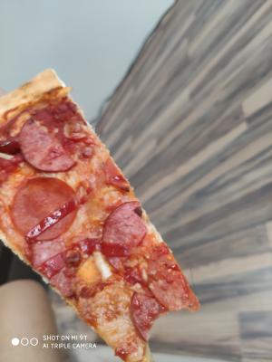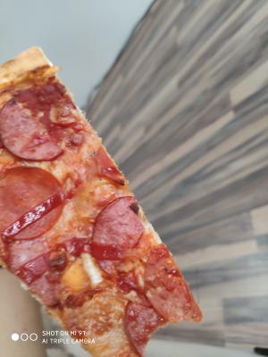 Состав: моцарелла, пицца-соус, бекон, пепперони, колбаски охотничьи, перец