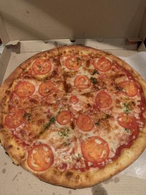 - мега-пицца "Маргарита " (60 см, 2000 г): пицца-соус, моцарелла, помидор кубик, помидор слайс, соус песто