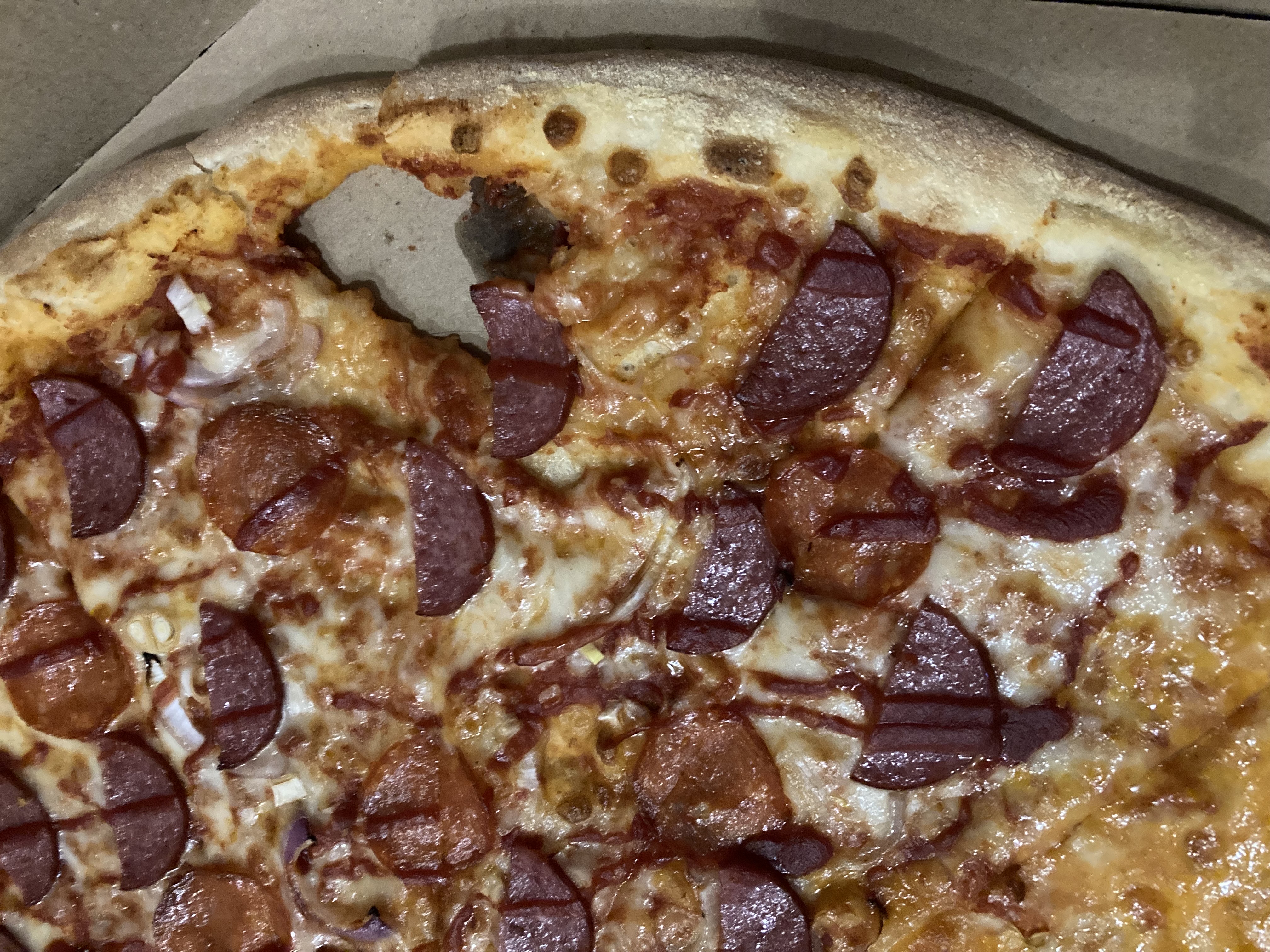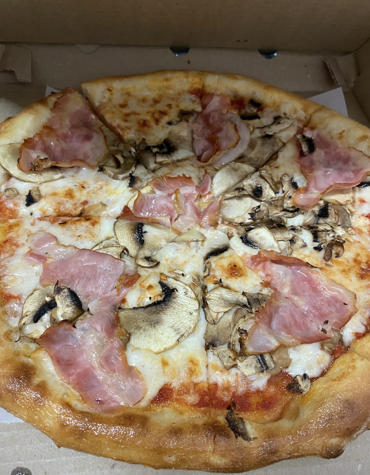 Состав: моцарелла, бекон, свинина, грибы, лук репчатый