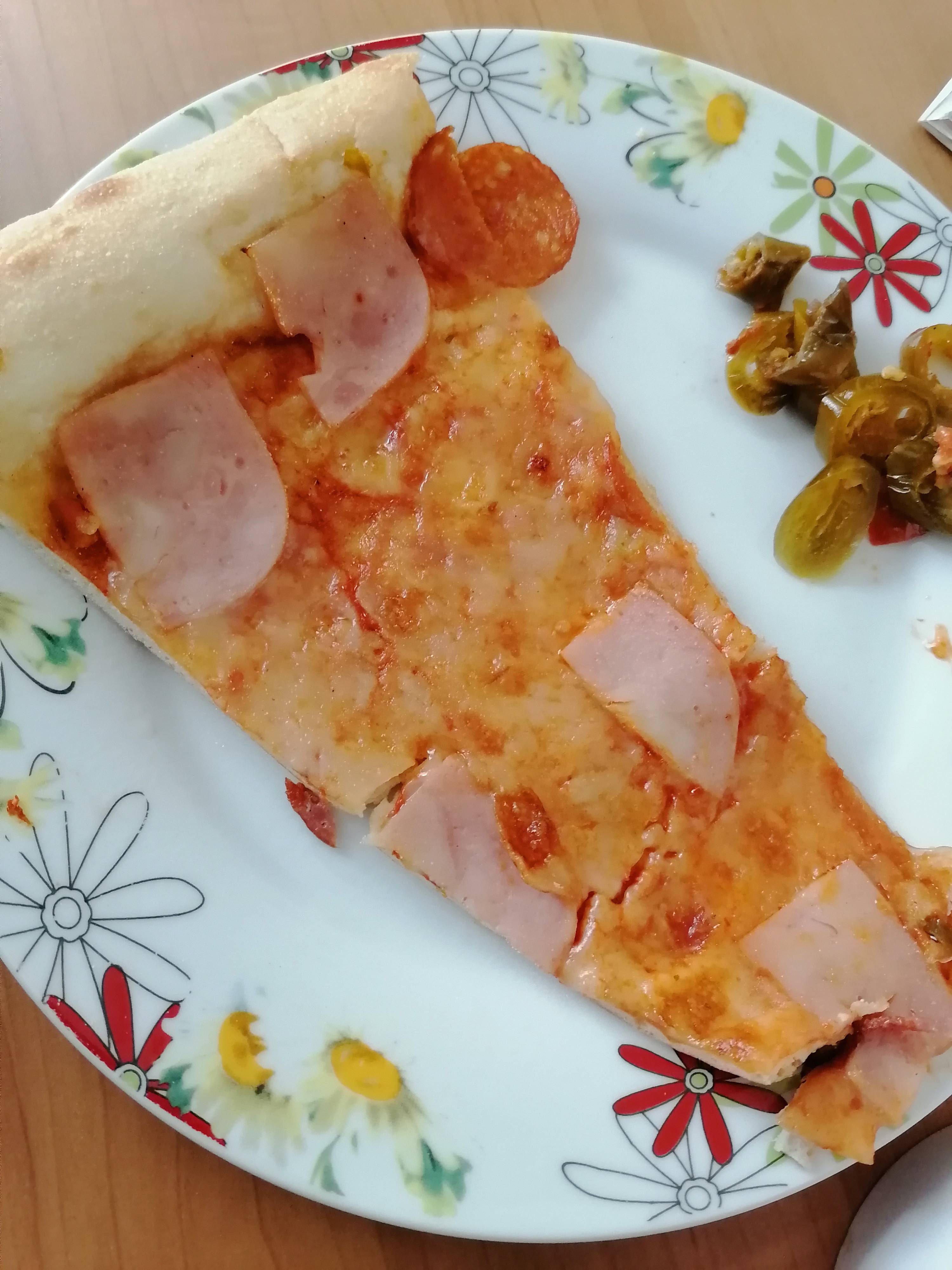 Состав: моцарелла, ветчина, грибы, колбаски охотничьи, огурец, курица, помидор, пепперони, перец сладкий, салями, перец халапеньо