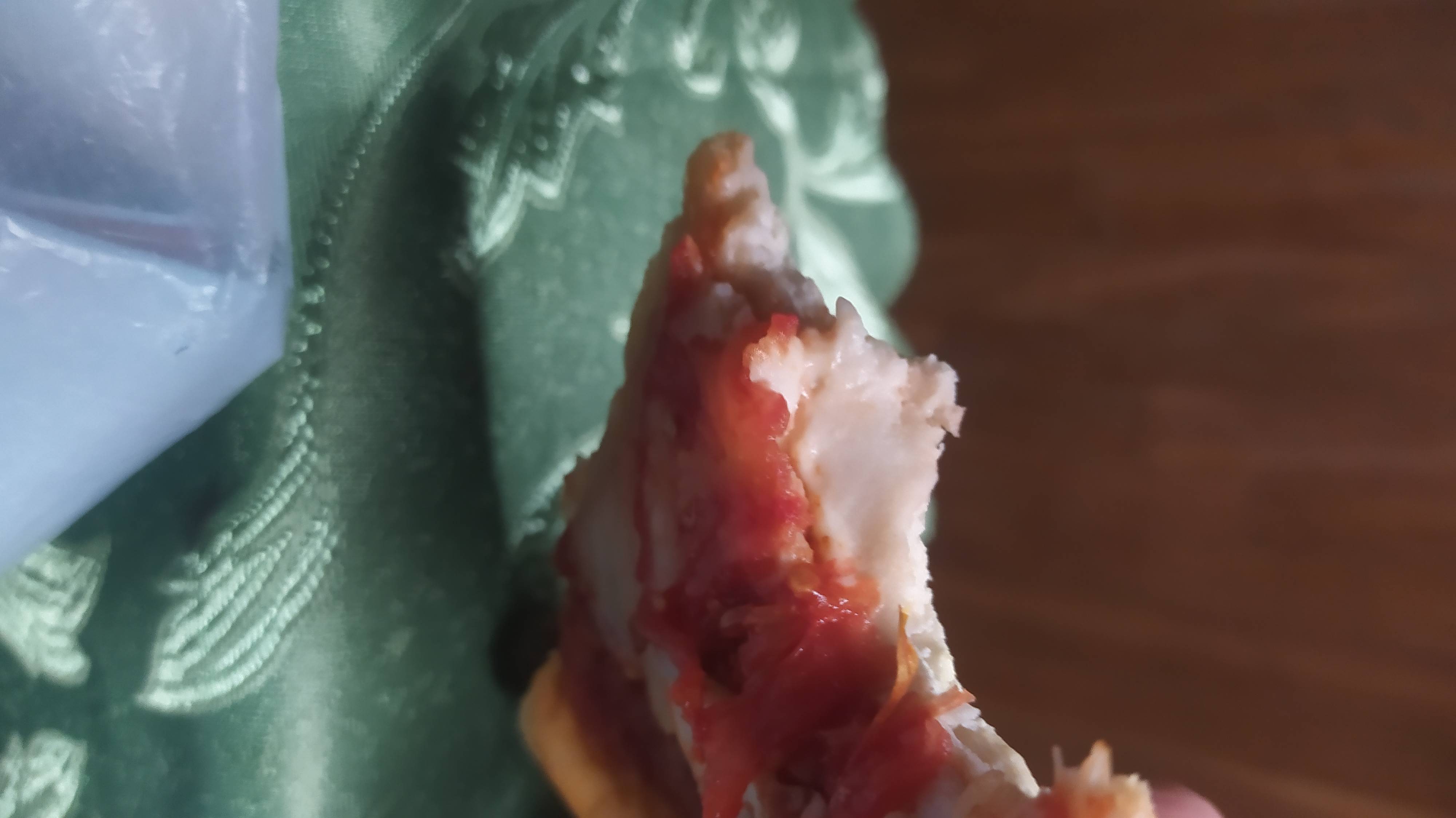 Состав: моцарелла, пицца-соус, ветчина, бекон, томат, огурец маринованный, чеддер, соус бургер
