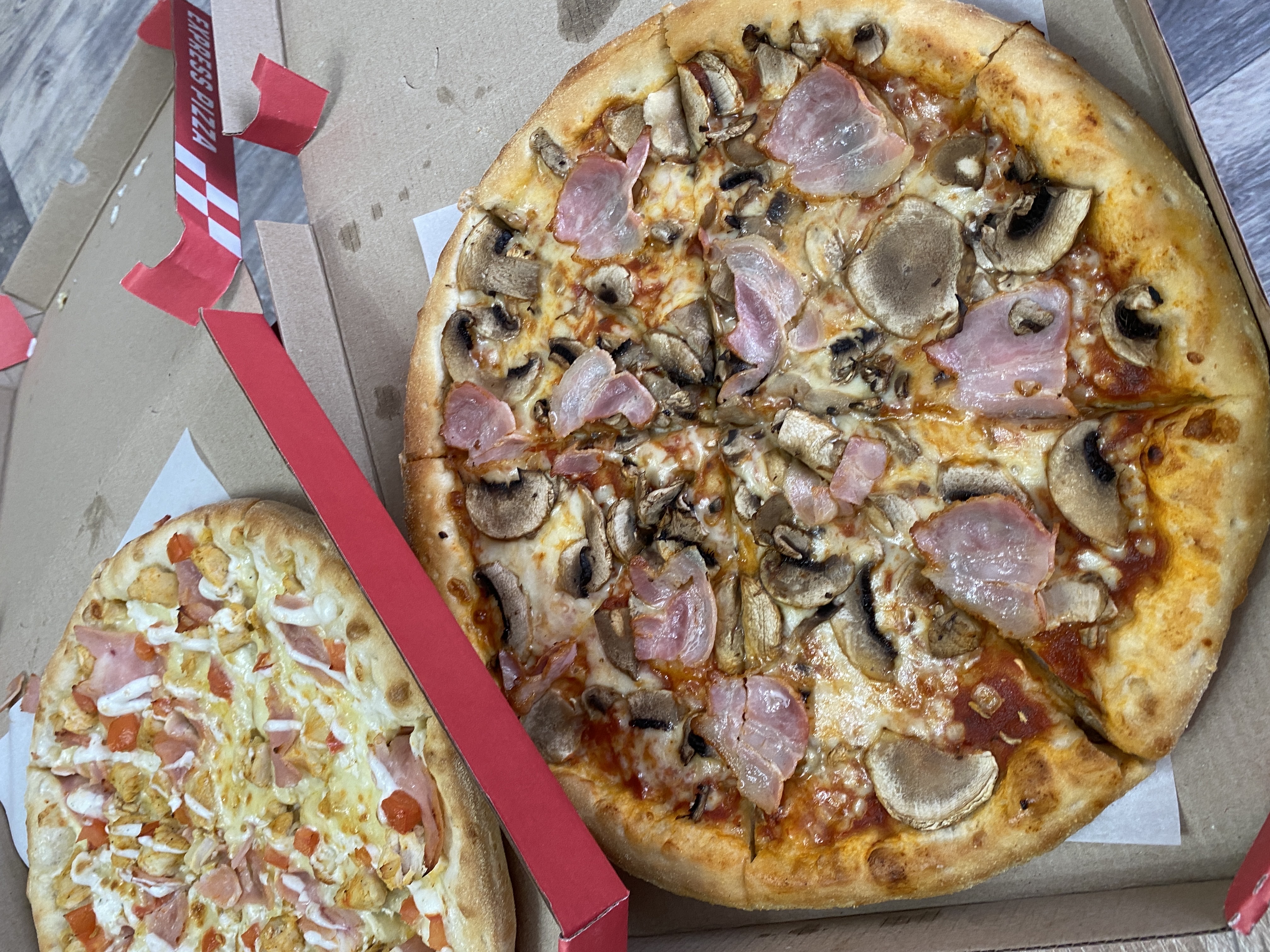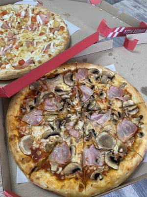 - пицца "Ветчина и грибы": 12 р. 24 р.