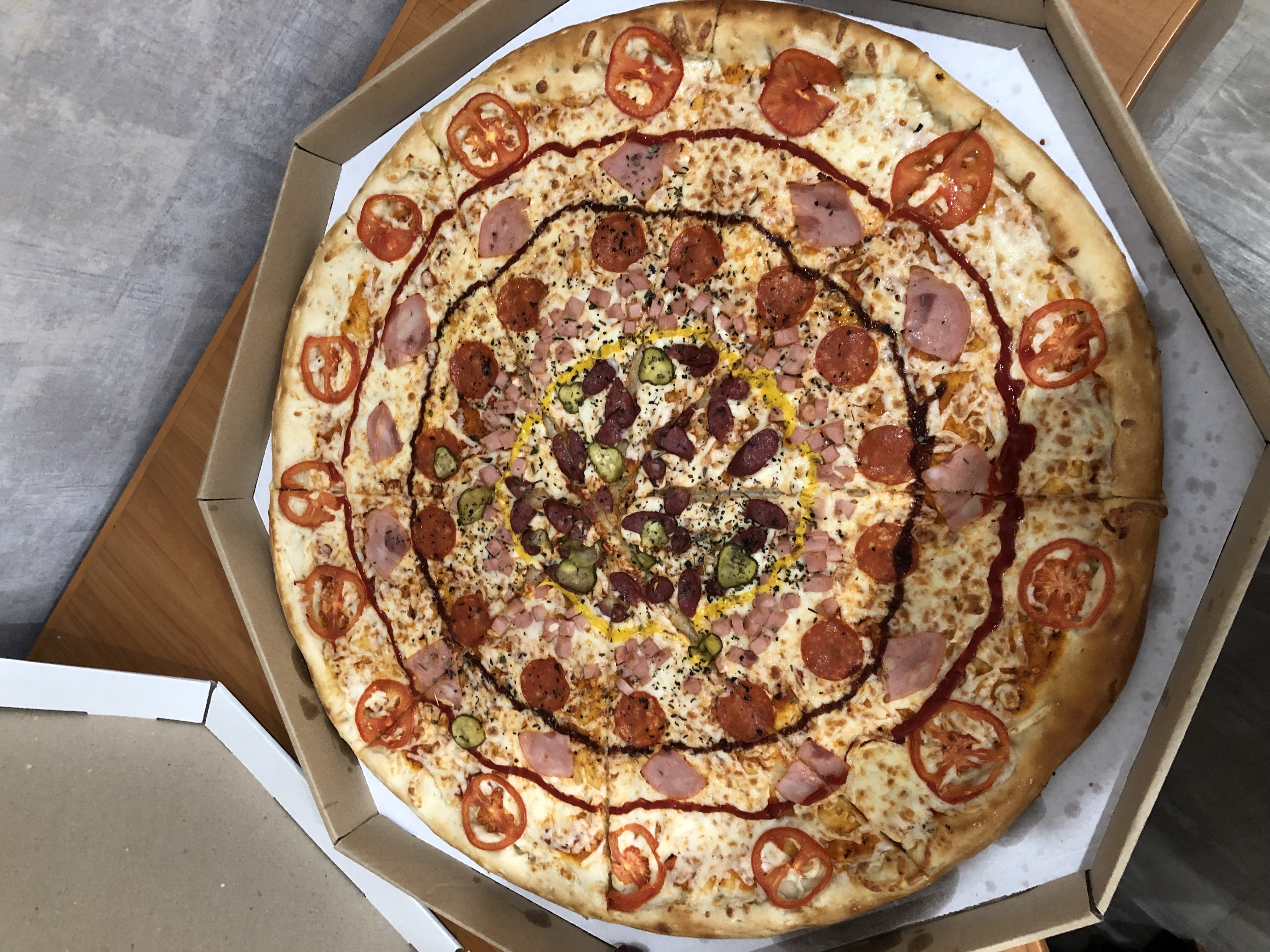 Заказали сегодня пиццу Компанейская. Она огромная! Красивая! Невероятно вкусная!!🥰