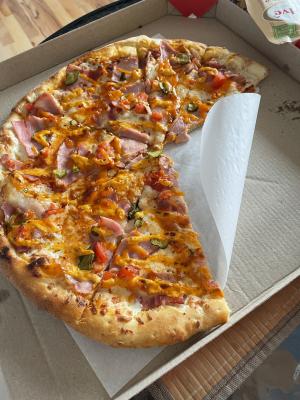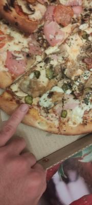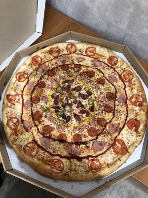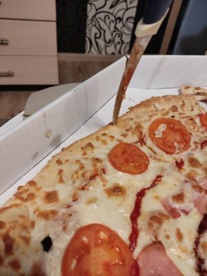 Пицца отвратительная, такое ощущение что лежала несколько дней и ее просто разогрели! На вкус сухая, соуса мало, ингредиентов мало! Не рекомендую заказывать, лучше взять в другом заведении!