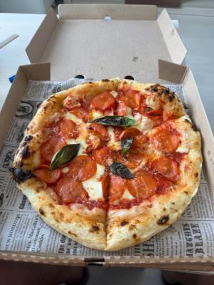 Состав: красный соус, пеперони, перец халапеньо, базилик, пармезан