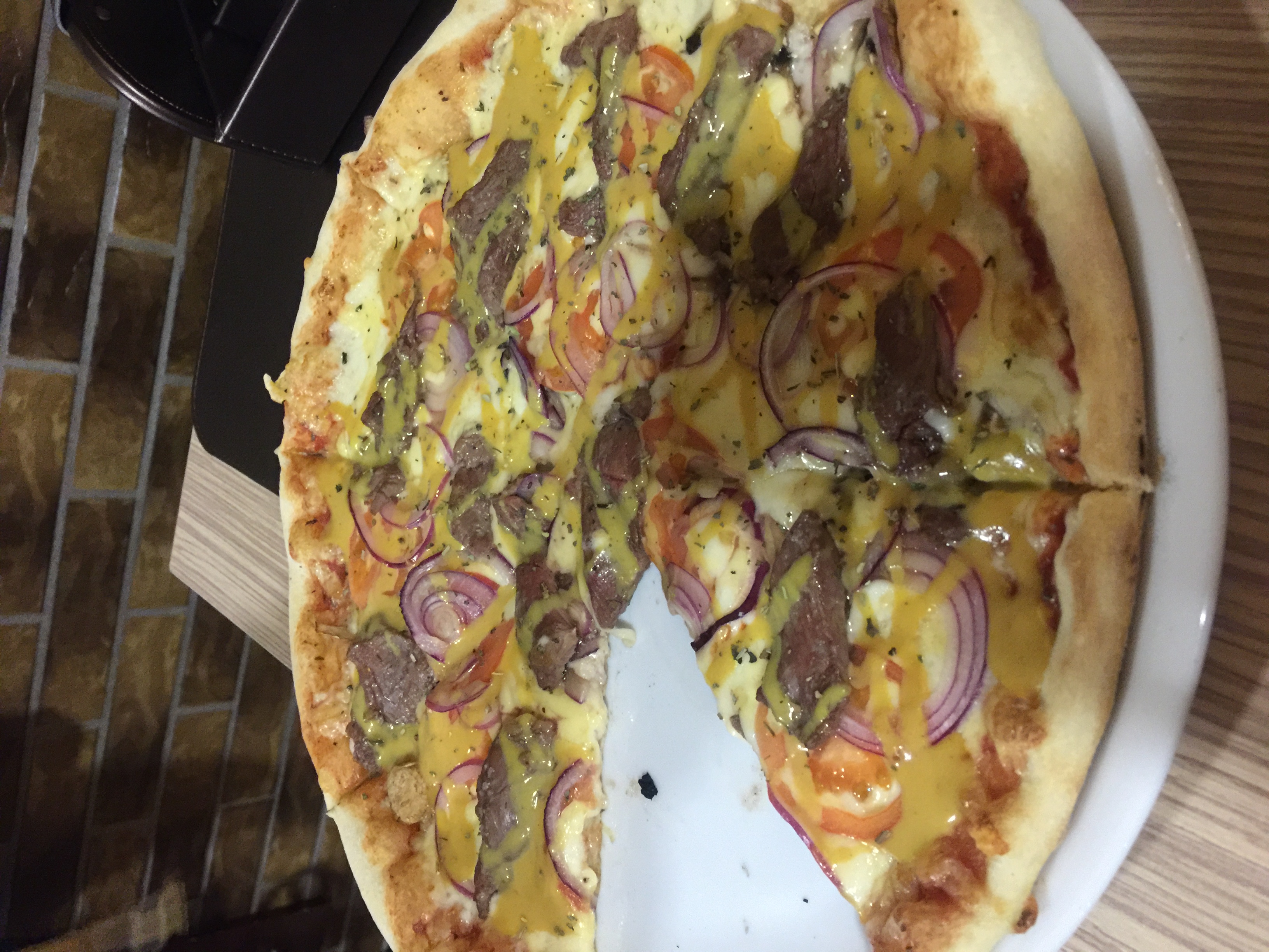 Состав: помидорная смесь, сыр моцарелла, говядина, томаты, лук, шампиньоны, американская горчица, специи