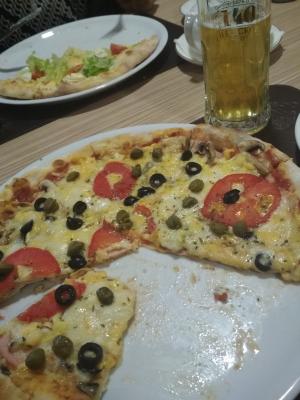 Состав: тесто, помидорная смесь, ветчина, салями, моцарелла, маслины, специи