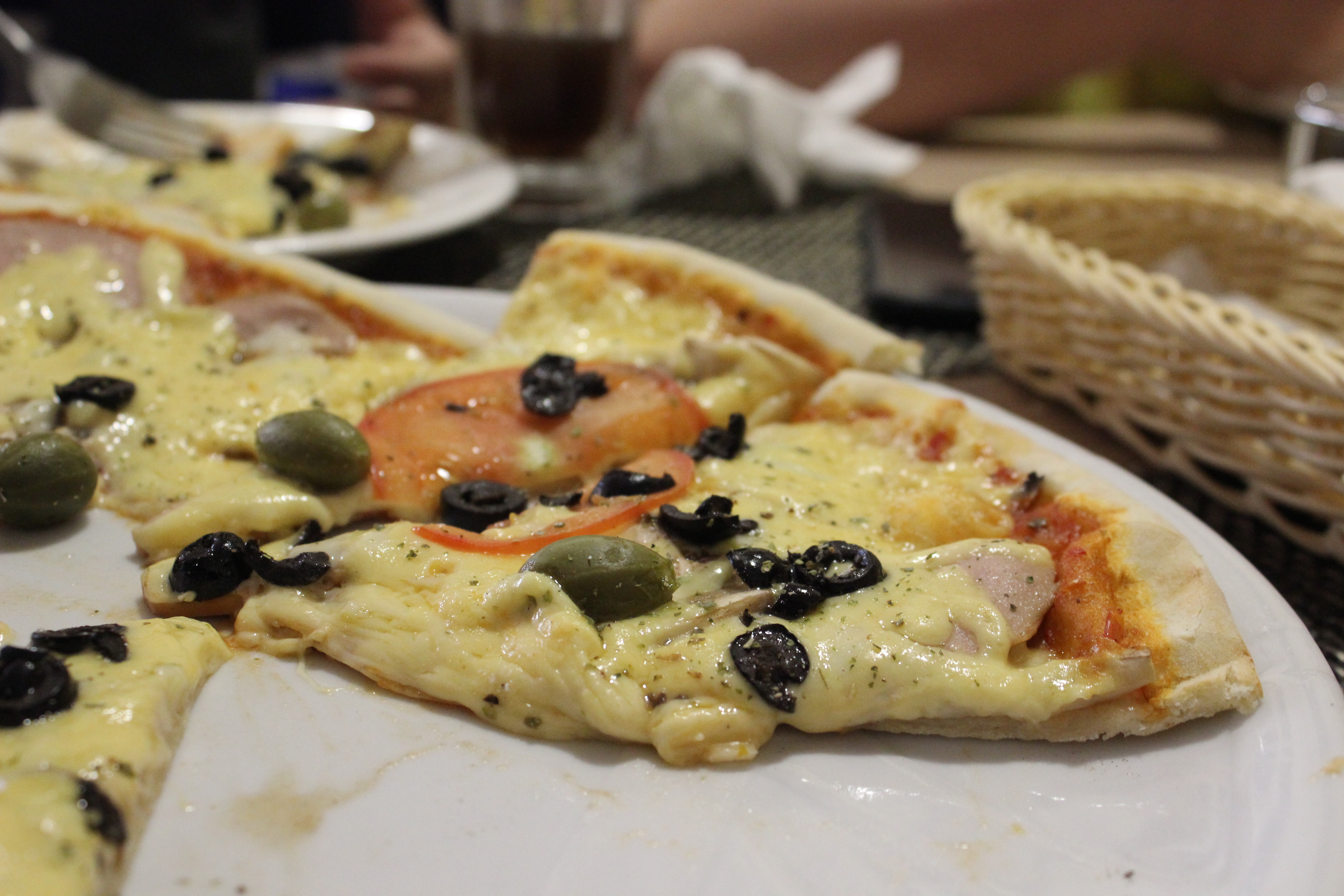 Состав: тесто, помидорная смесь, ветчина, салями, моцарелла, маслины, специи