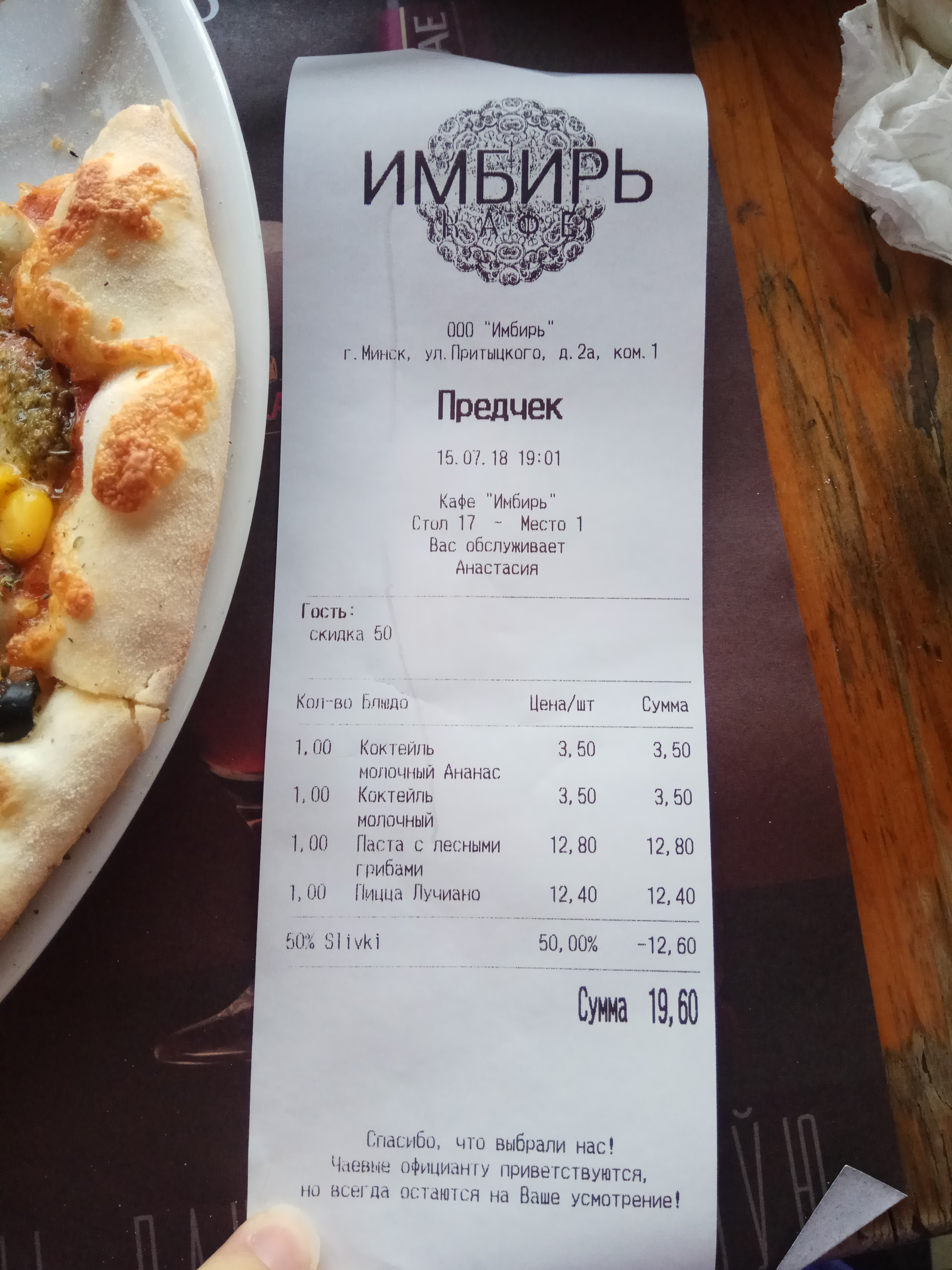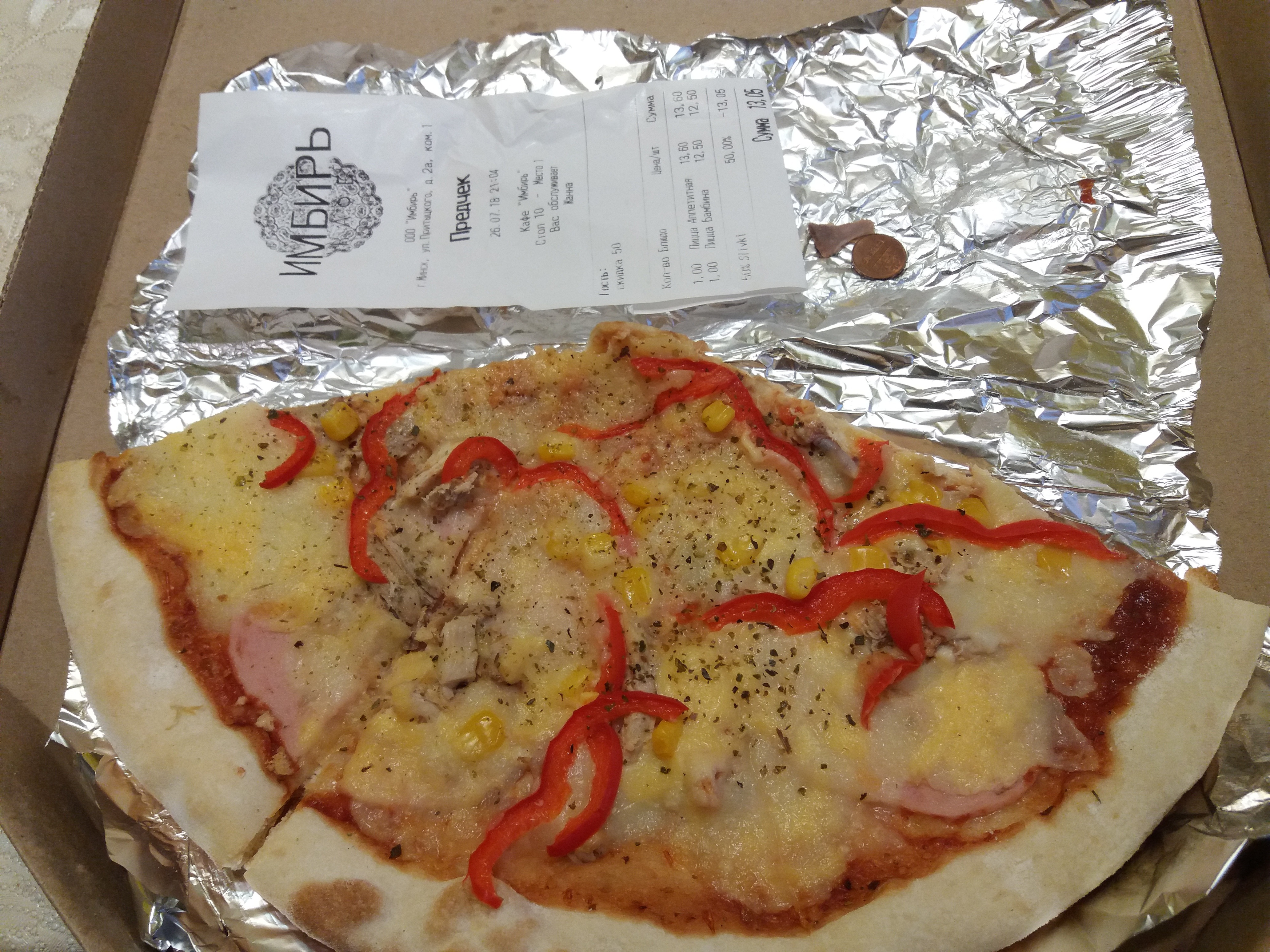 - Промокод дает право на скидку 50% на пиццы в кафе "Имбирь"