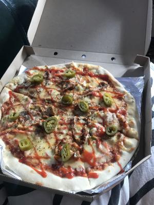 Состав: тесто, помидорная смесь, моцарелла, колбаса с/к, перец халапеньо, специи