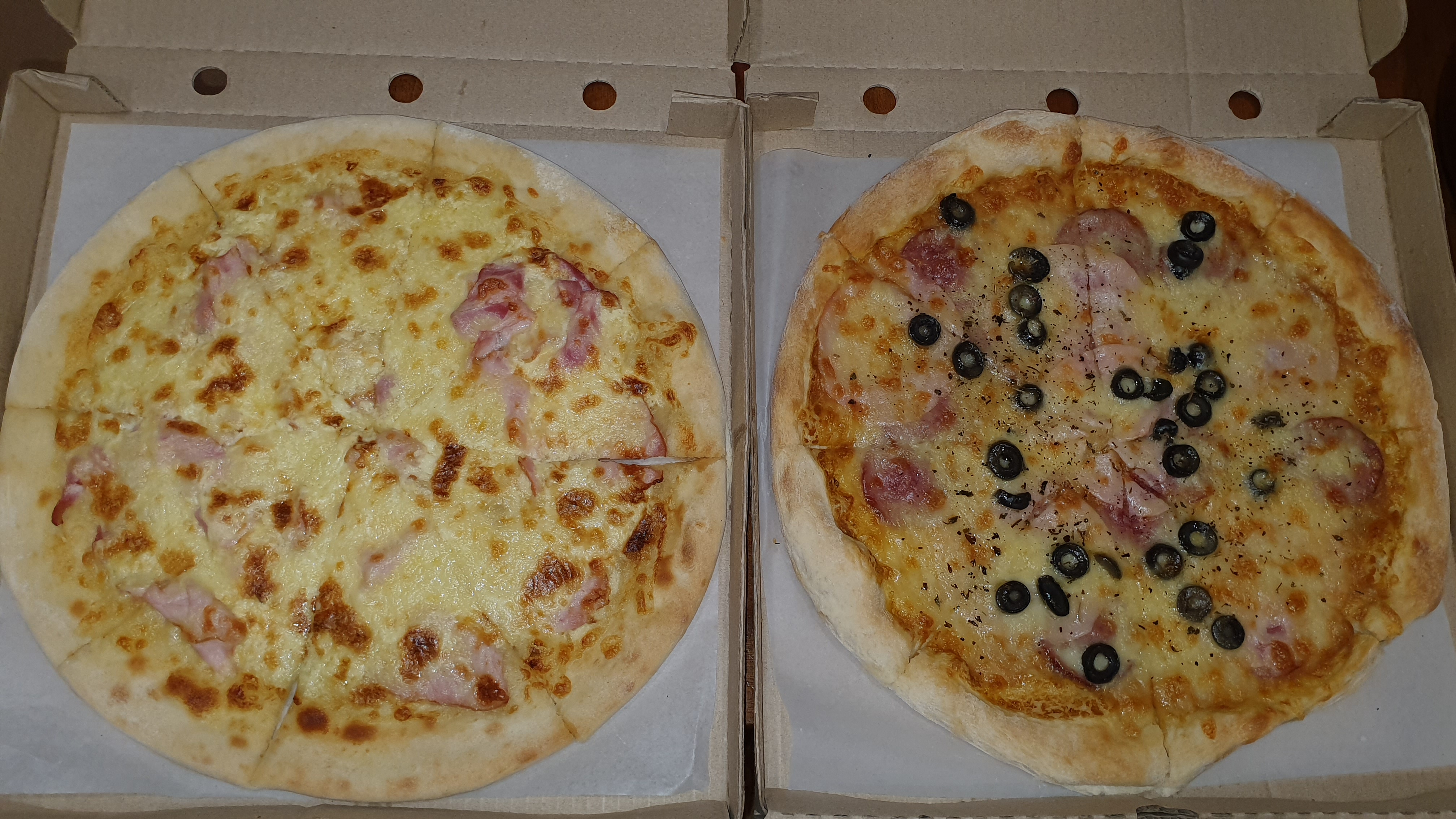 Состав: тесто, помидорная смесь, ветчина, салями, моцарелла, маслины, специи