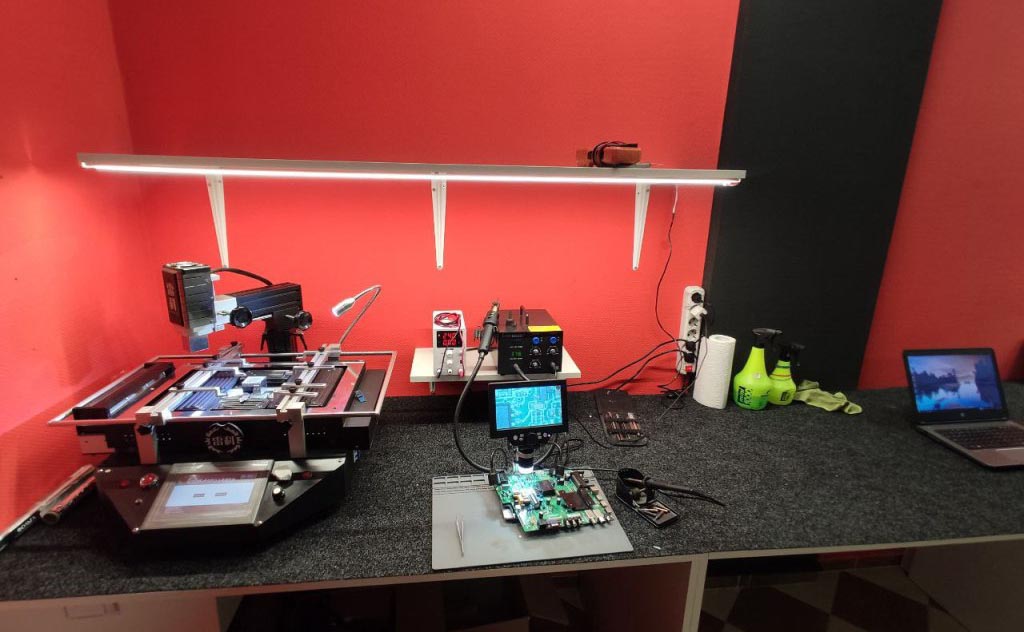 Также в комплектацию бизнеса входит качественное оборудование для ремонта, среди которого отдельно хотелось бы отметить инфракрасную паяльную станцию для пайки "BGA" чипов для плат больших размеров.