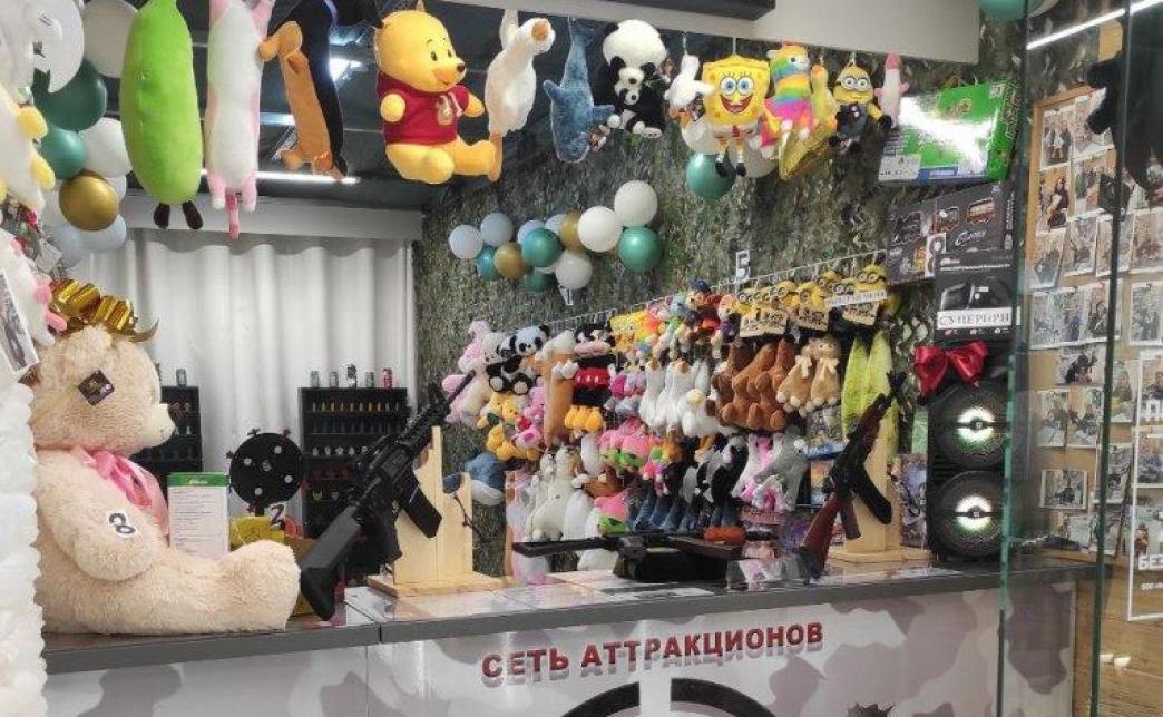 Оборудование и товар в собственности (стеллажи с мишенями, мебель, освещение, световая иллюминация, профессиональное страйкбольное оборудование, все мягкие игрушки и призы, рекламные световые короба, кассовое оборудование, эквайринг и т.д.)
