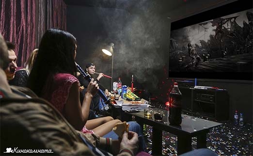"Кинокомната" является первым частным кинотеатром в нашей стране. Она представляет собой 6 отдельных комнат, которые закрываются на ключ и легко вмещают в себя дружную компанию до 6 человек. Есть и большая VIP комната, которая вместит до 15 человек."