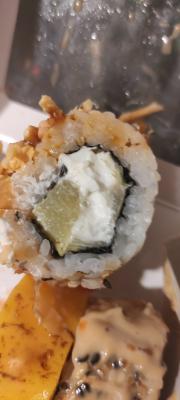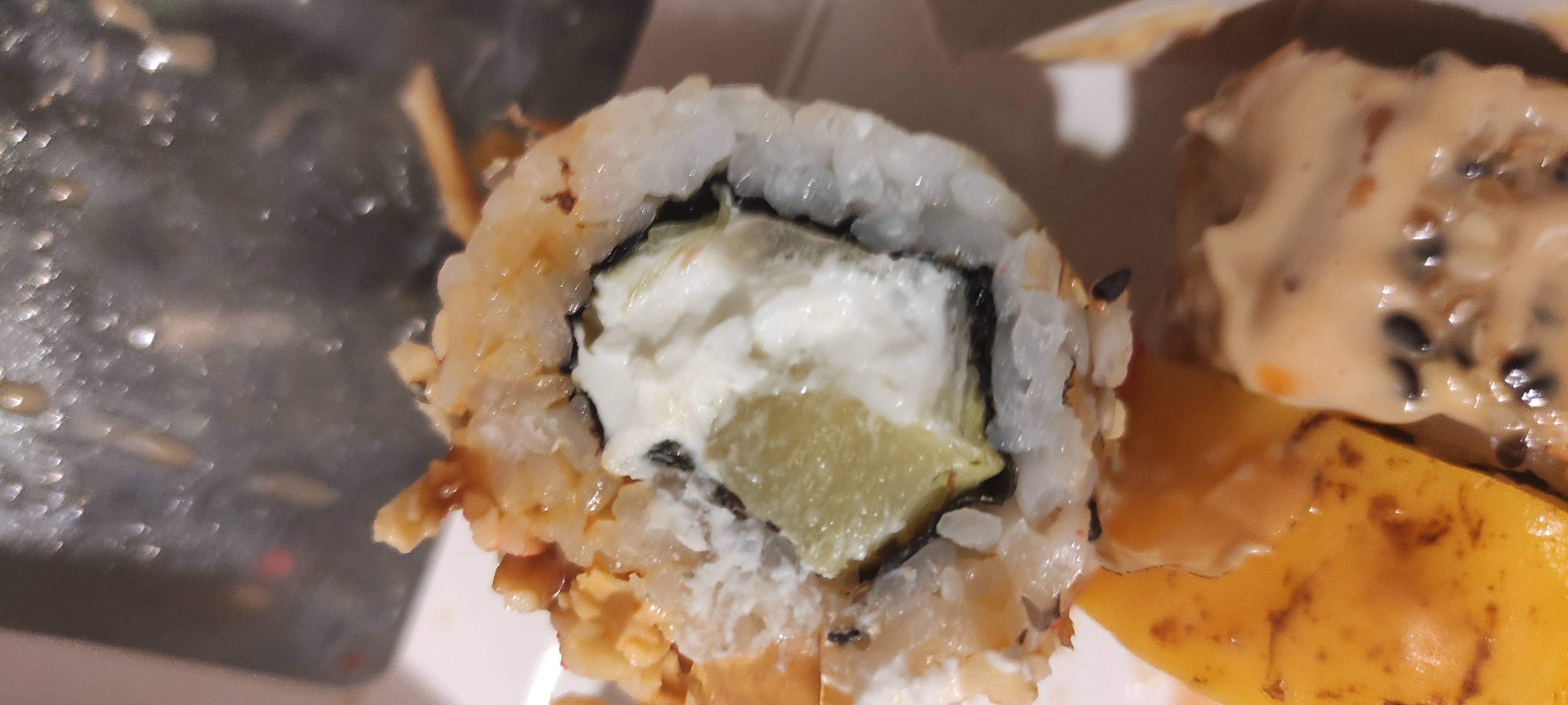 - "Аризона фрай": филе лосося, сливочный сыр, огурец, такуан, панировка - 5 шт.