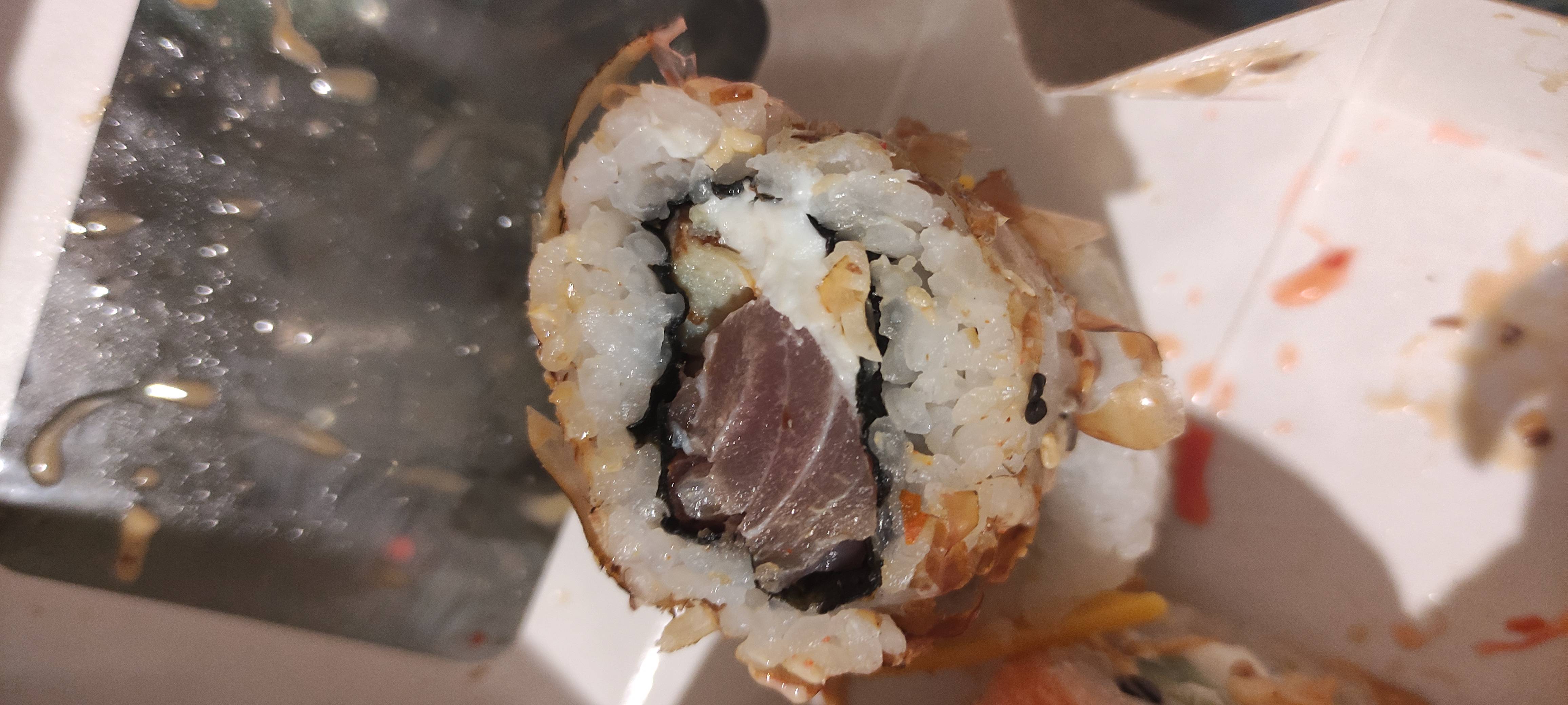 - "Магуро фрай": филе тунца, сливочный сыр, такуан, салат Айсберг, панировка - 5 шт.