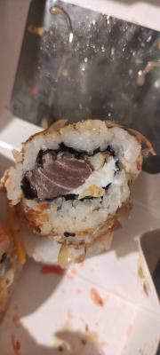- "Нидзи тунец": филе тунца, сливочный сыр, огурец, такуан, рукола, соус Терияки - 8 шт.