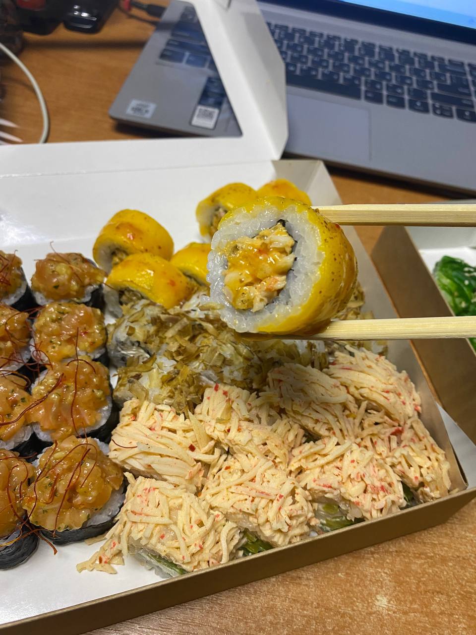 - "Спайси краб 🌶": сурими, сливочный сыр, ананас, салат Айсберг, соус Терияки, острый соус - 8 шт.