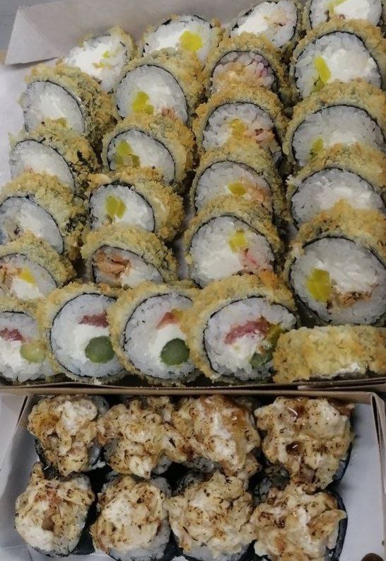 - "Магуро фрай": филе тунца, сливочный сыр, такуан, салат Айсберг, панировка - 5 шт.