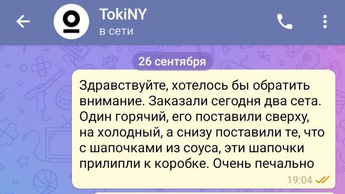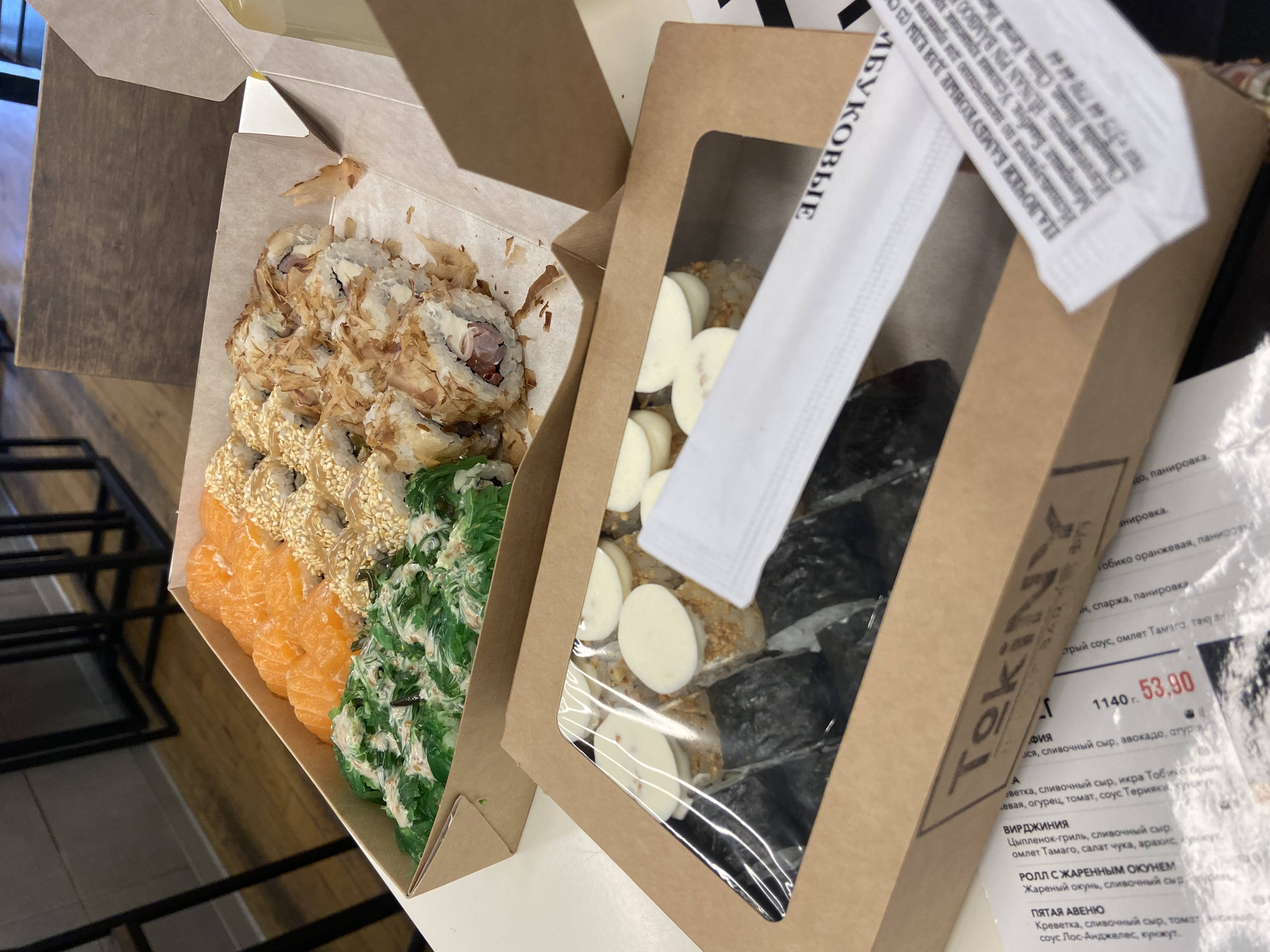 Раньше токини, были самыми любимыми суши, но последний опыт испортил все впечатления, огромное разочарование, причём дважды за один вечер, очень часто заказывали сет жара по сливкам, всегда было все прекрасно и вкусно, но вчера, это быдо похоже на издевательство со стороны поваров и администрации. Заказали сет, привезли во время, открыв коробку с сетом у меня был шок, это мягко говоря (так заказывали ранее, я знала как он должен был выглядеть) сделали фото написали в Инстаграм, после чего мне сказали, что будут решать данный вопрос, со мной связался повар, извинился за ситуация и предложил передать данные роллы, пообедали привезти в течении часа новые, и снова шок, открываю роллы, а они такие же безобразные!!! Это просто ужас, снова попыталась написать в Инстаграмм, но меня красиво проигнорировали ) спасибо за испорченный вечер, это был последний опыт с токини. Второе фото, то что привезли во второй раз в качестве извинений, третье, что привезли в первый раз, как видите с картинкой вообще не совпадает ))