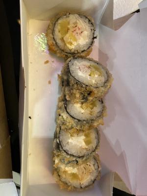 - "Аризона фрай": филе лосося, сливочный сыр, огурец, такуан, панировка - 5 шт.
