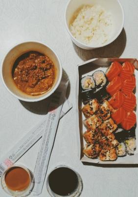 Заказали сет Кватро, качество продуктов на высоте. В рамэне лапша не разварилась и осталась упругой.Тяхан очень вкусный, рис приготовлен просто божественно. Очень приятная девушка помогла выбрать сет и оформить заказ. Мы остались довольны и точно будем заказывать еще!❤