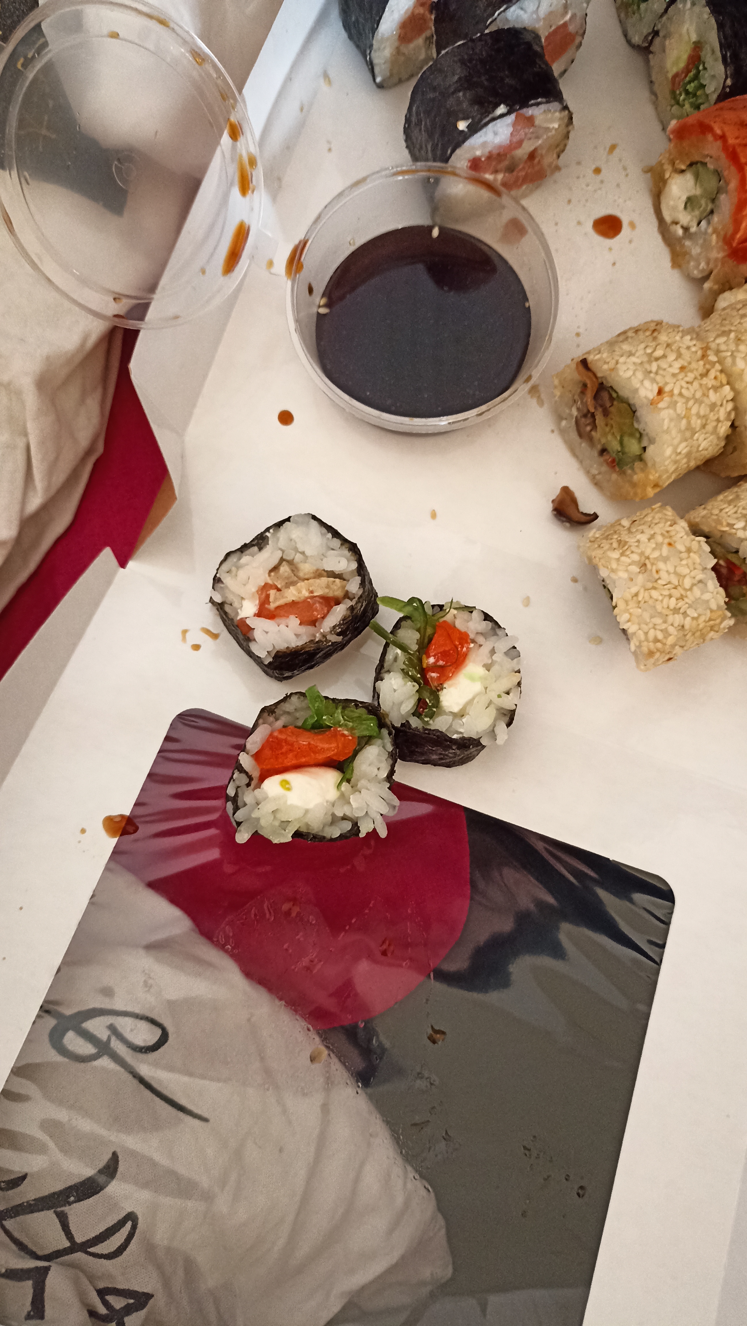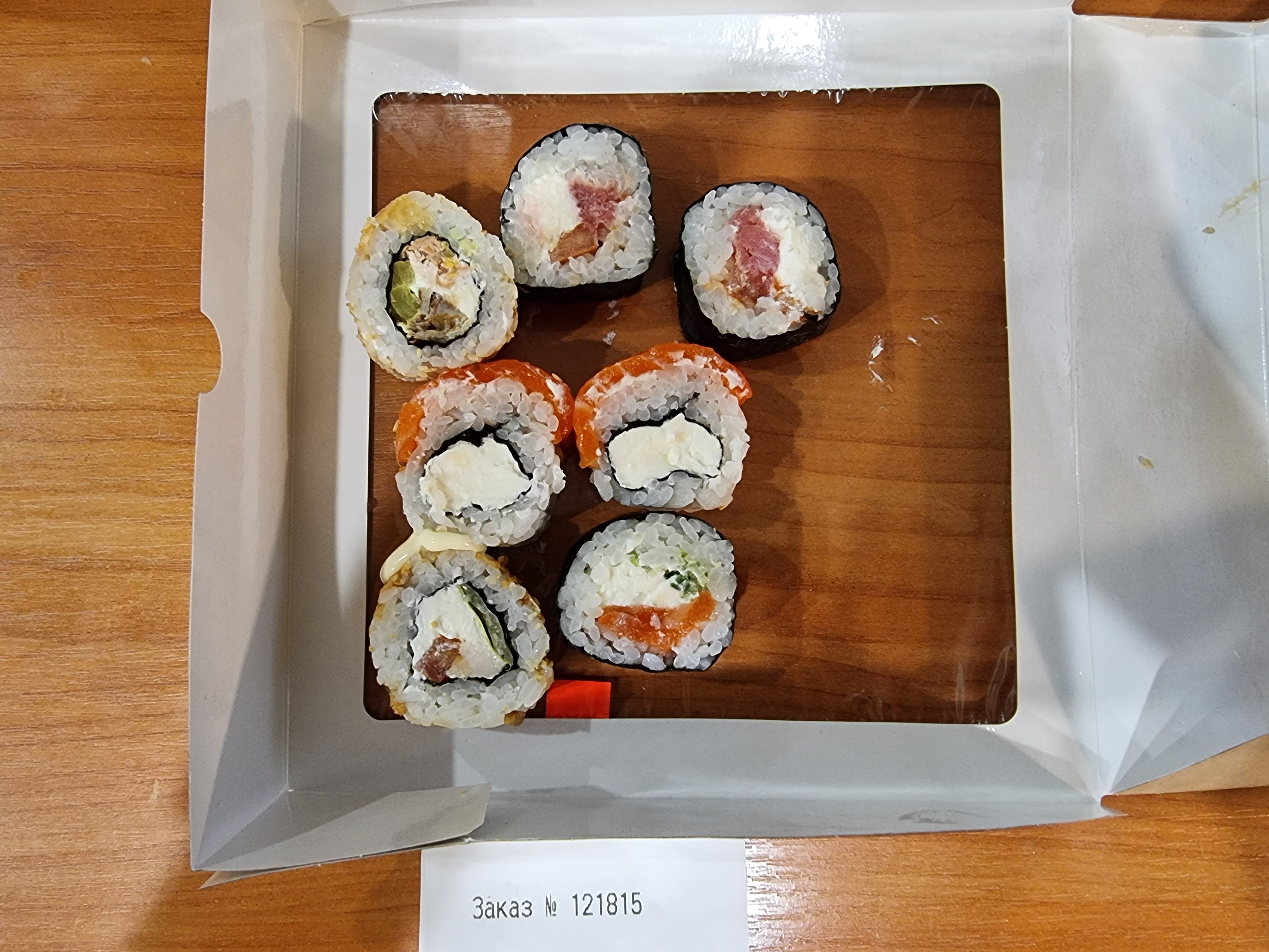 Здравствуйте,заказывали у вас сет «суши фест»,приехали красивые роллы,что аж дно коробки видно,первый раз вижу вообще такое,-1 постоянный клиент!