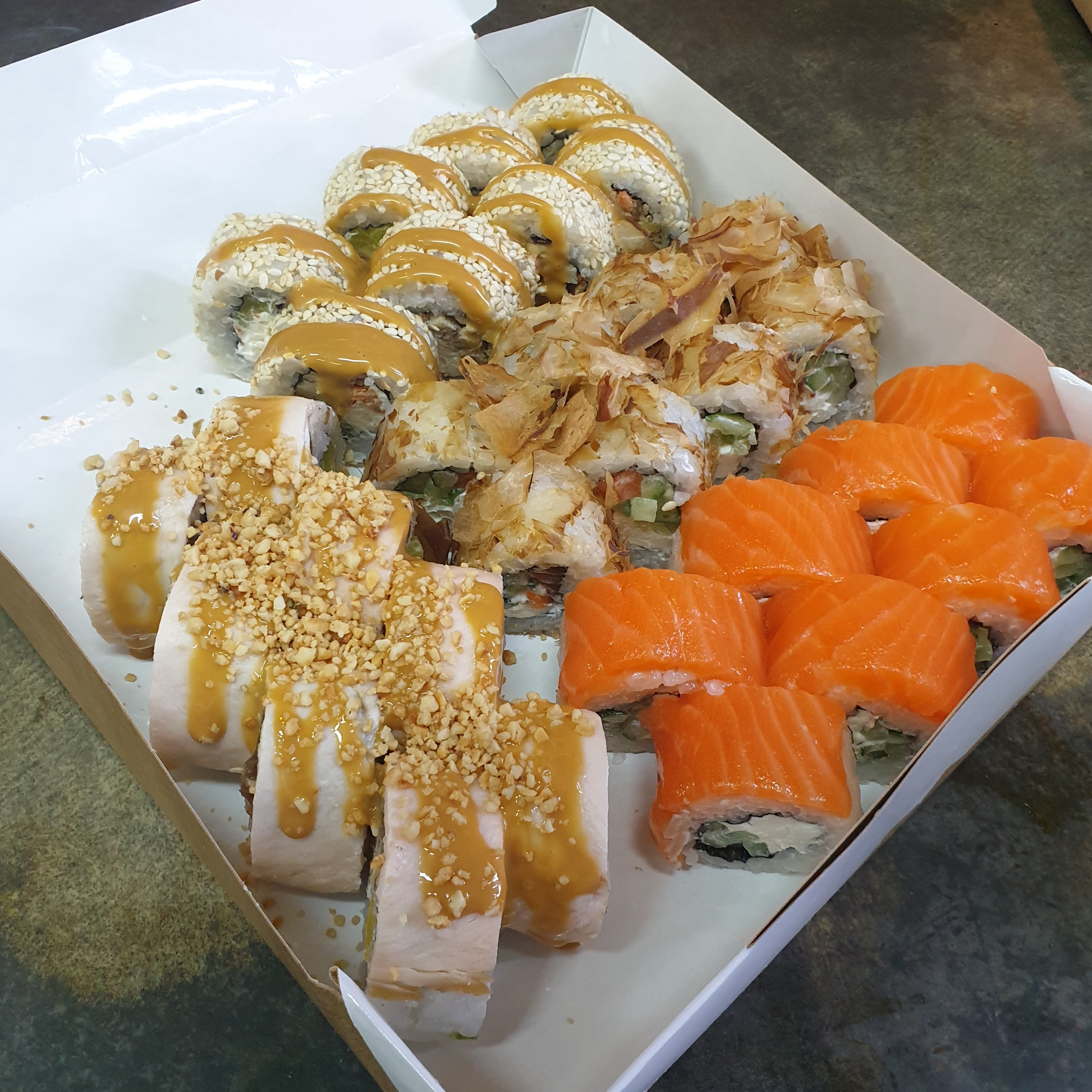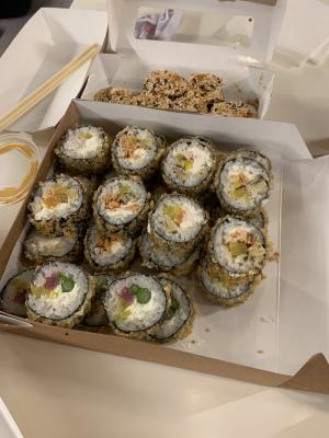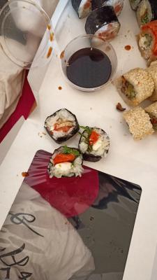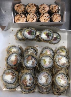 Увы и ах, разочарование. Сет Суши-фест. Огромные роллы, куча риса, скручено неаккуратно. Если раньше было очень вкусно, то теперь просто приемлемо, съедобно. В прошлом заказе был косяк с граммовками, пообещали ролл в подарок. По итогу дали половинку ролла. С оплатой тоже косяк. Оплатил онлайн, курьер приехал с чеком, где была доплата. Доплатил курьеру, связался с колл-центром, все выяснили, пригнали курьера обратно, чтобы вернул обратно эту доплату. Был постоянным клиентом, однако пора искать другую доставку, уровень сервиса стал катастрофически хромать: то недовес, то опоздание, а вкус уже давно не тот. Администраторы извиняются, решают вопросы, предлагают извинения за заказ, однако никаких изменений в качестве самого продукта не происходит (