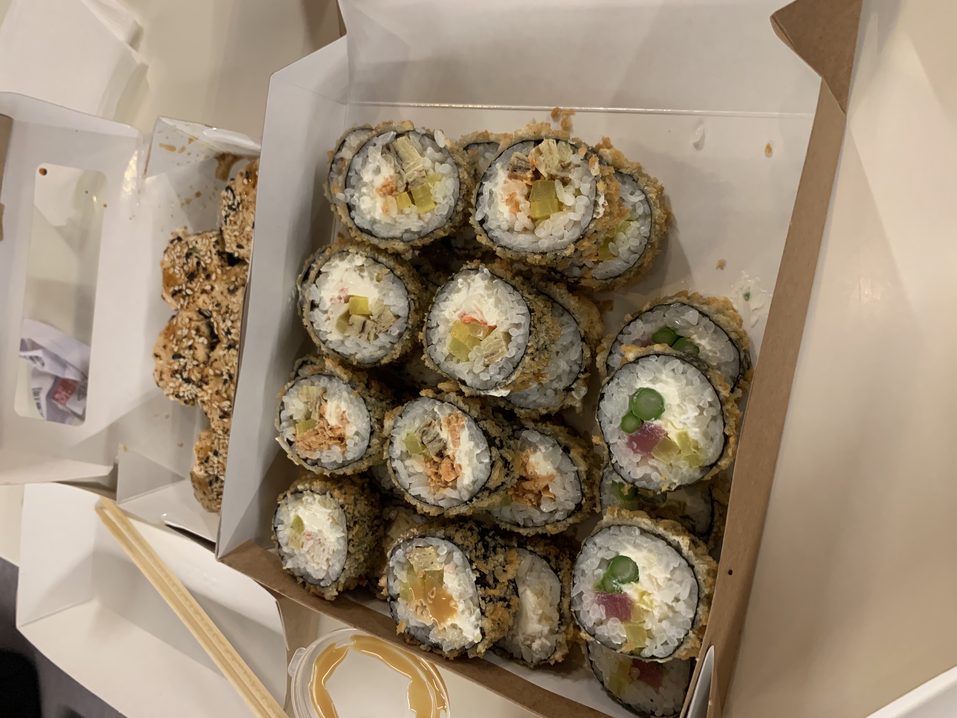 Заказала на кальварийской 33 сет роллов) мы с молодым человеком в гастрономическом восторге) будем брать только здесь! Очень вкусно 😋