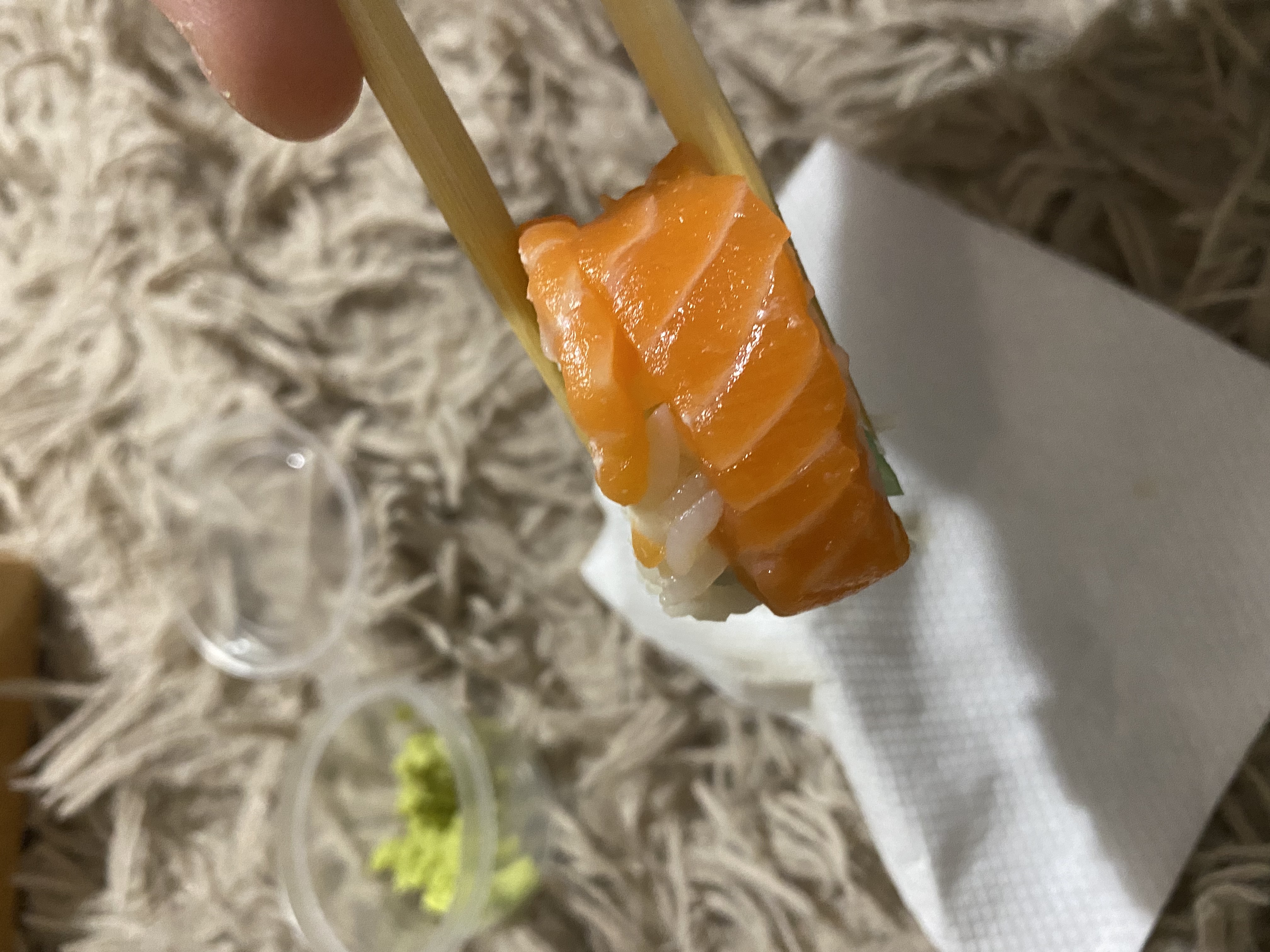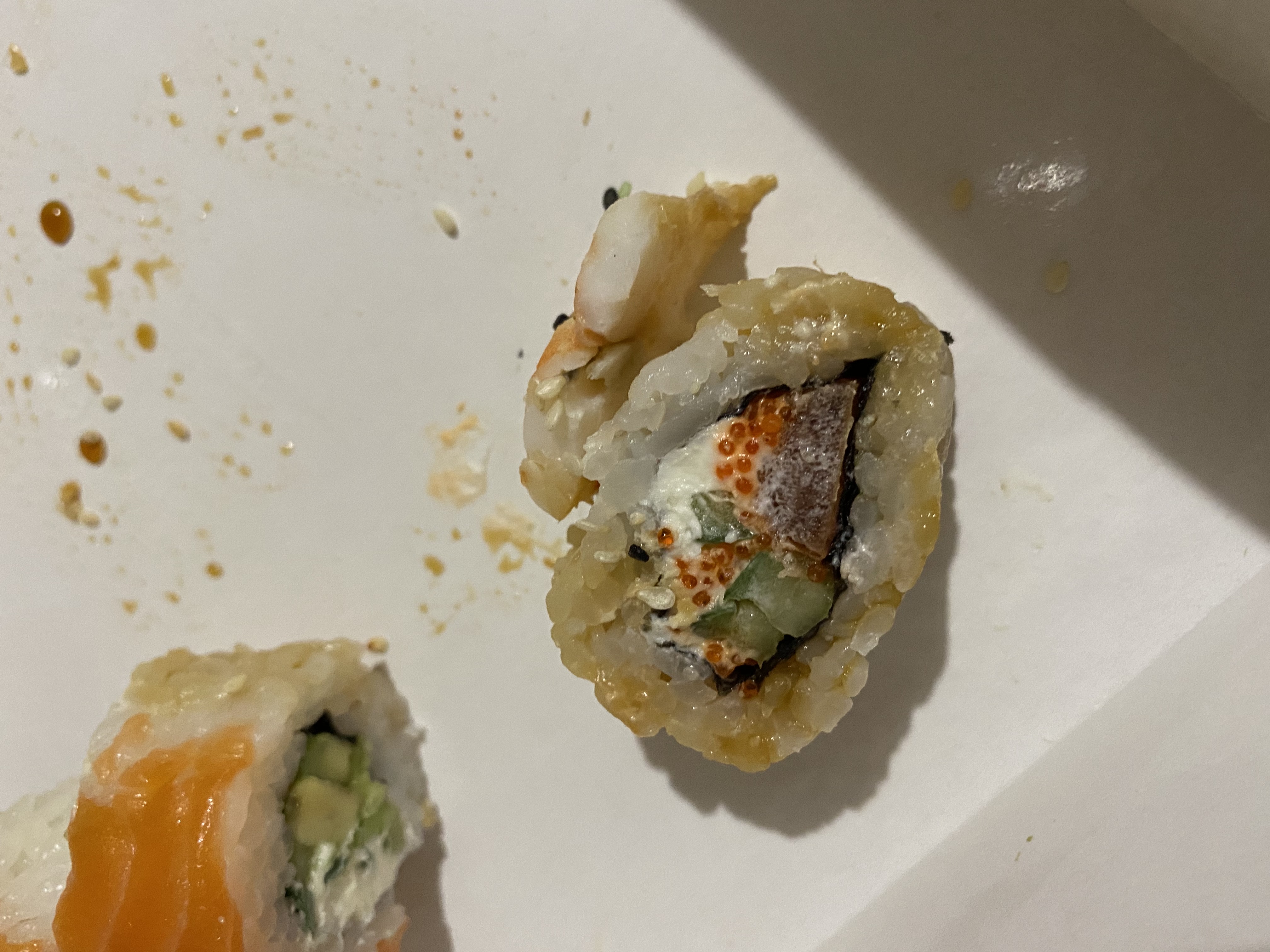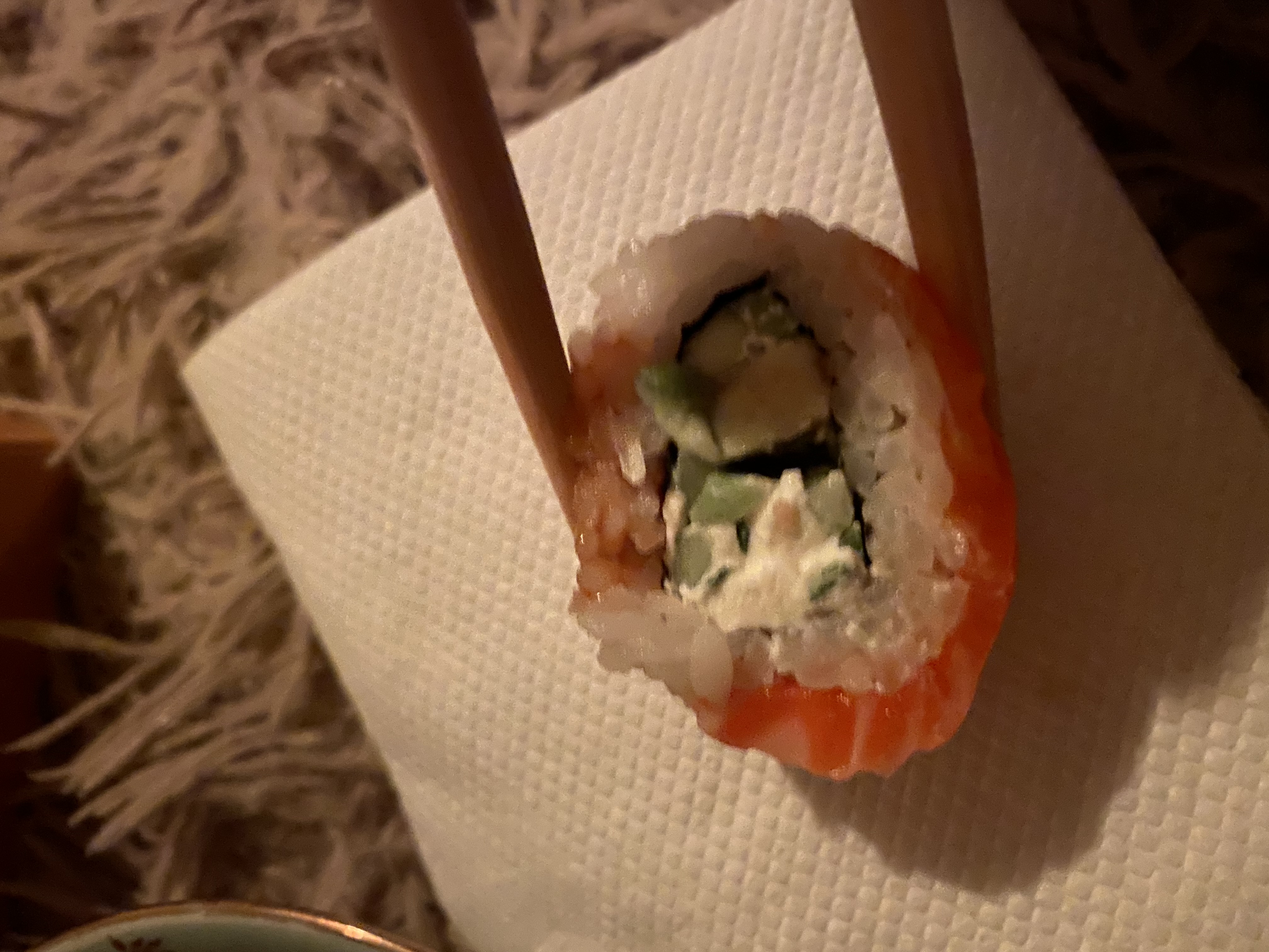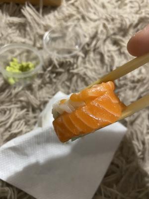 - "Манхеттен": филе лосося, сливочный сыр, авокадо, огурец, кунжут - 8 шт.