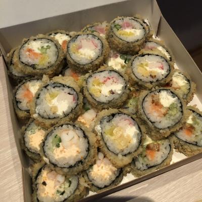 - "Аризона фрай": филе лосося, сливочный сыр, огурец, такуан, панировка - 5 шт.