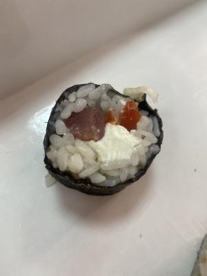 - "Магуро фрай": филе тунца, сливочный сыр, такуан, салат Айсберг, панировка - 5 шт.