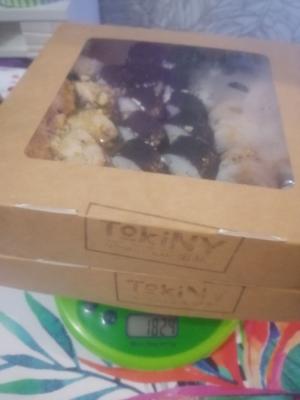 - "Брайтон": филе тунца, сливочный сыр, такуан, огурец, лук зеленый, соус пряный, соус терияки, орехи кешью - 8 шт.