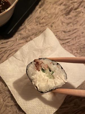 - "Бонито": филе лосося, огурец, сливочный сыр, стружка тунца - 8 шт.