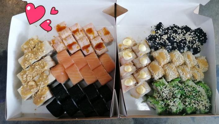 - "Детройт": цыпленок-гриль, томат, салат Айсберг, такуан, сливочный сыр, луковый мармелад, соус Лос-Анджелес и орехи кешью - 8 шт.