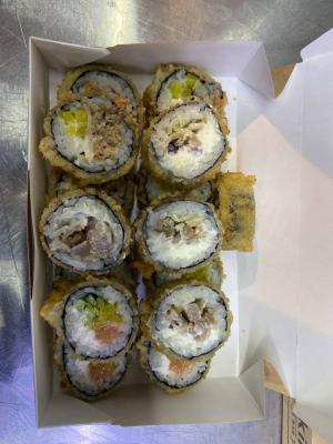 - "Аризона фрай": филе лосося, сливочный сыр, огурец, такуан, панировка - 5 шт.