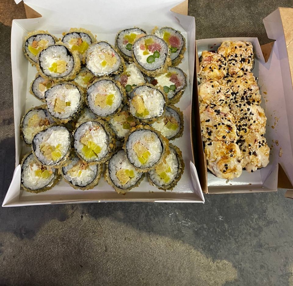 - "Магуро фрай": филе тунца, сливочный сыр, такуан, салат Айсберг, панировка - 5 шт.