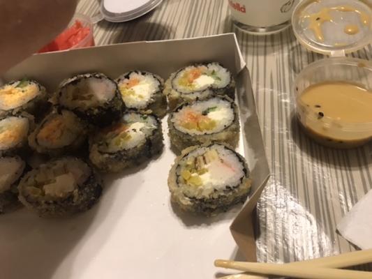 - "Аризона фрай": филе лосося, сливочный сыр, огурец, такуан, панировка - 5 шт.